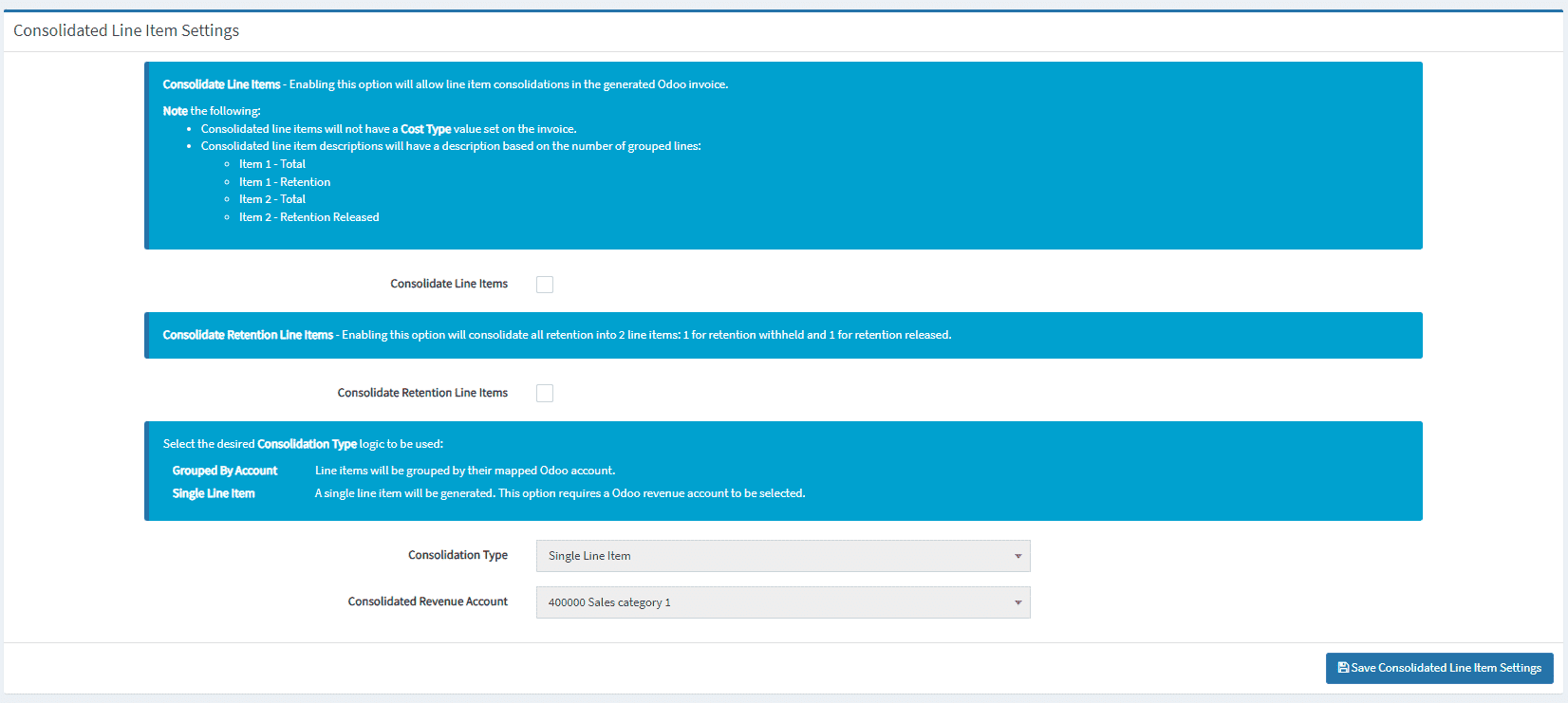 Click “Save Consolidated Line Item Settings” once you have finalized the configuration.