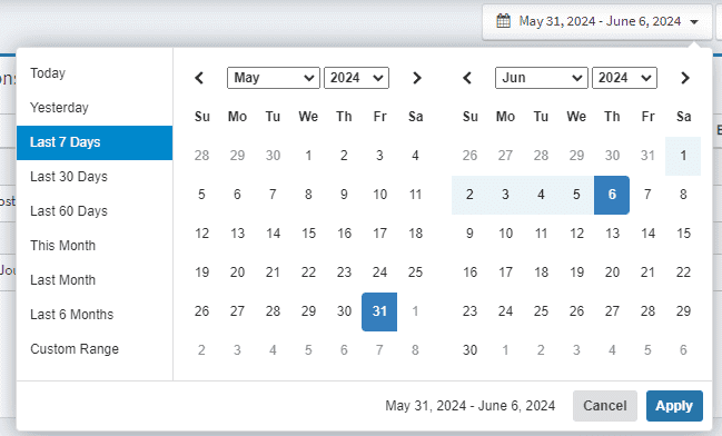 You can filter the overall transactions by the date range: