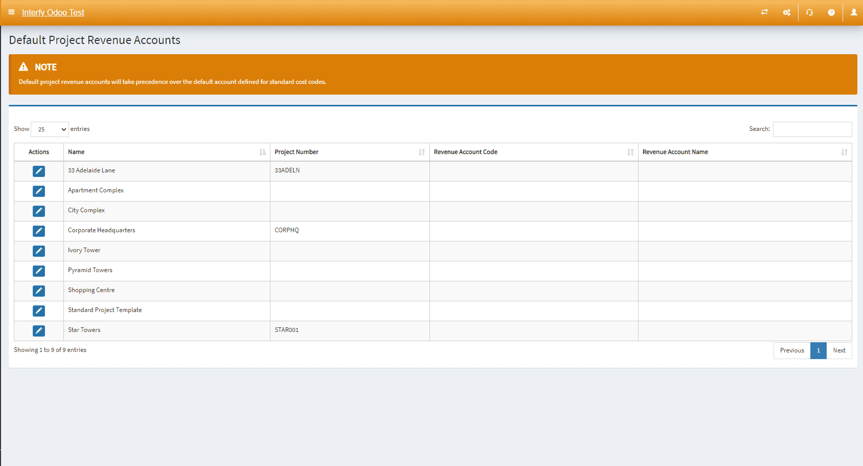 - Apply to All: Create mappings to the selected Odoo Revenue Account for all cost codes of the selected project