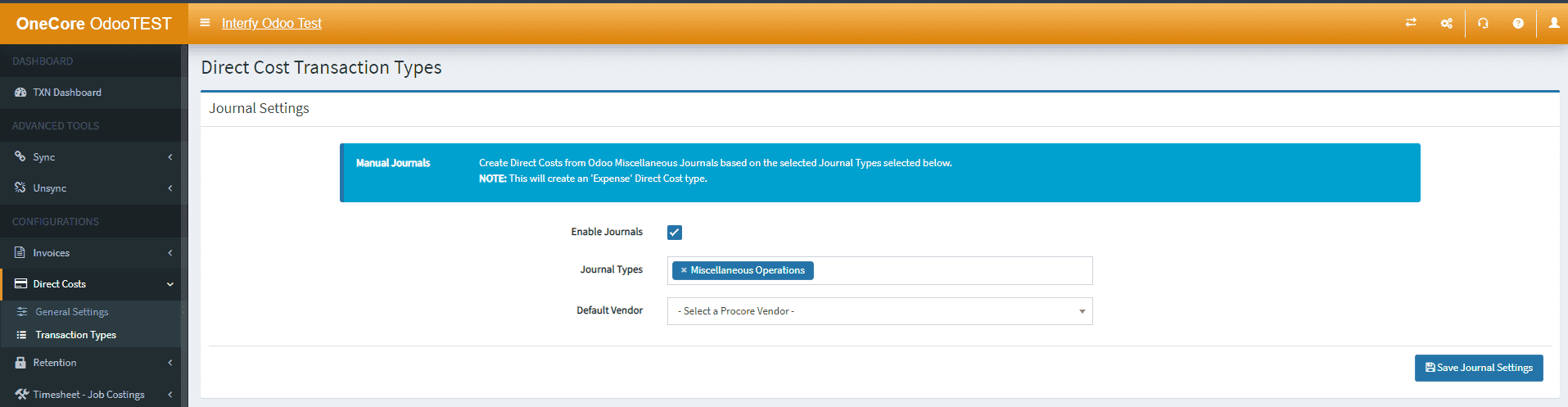 - Enable Journals: Create Direct Cost from Odoo