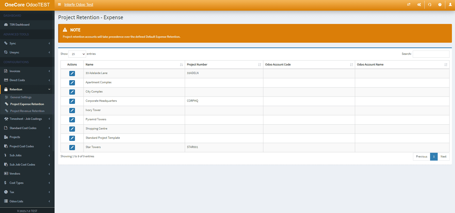 - Expense Account: Set the default Odoo Expense Account to use for tracking retention amounts