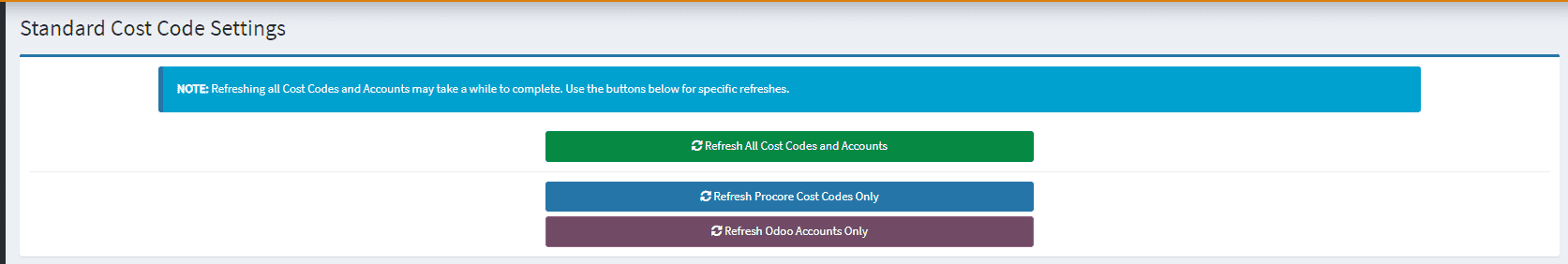 - Refresh All Cost Codes, Items and Accounts (Procore & Odoo)