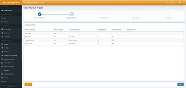 The Payrun Wizard is a step-by-step guide that help users through the process of creating and reviewing payruns before finalizing them in Procore and MYOB. This wizard ensures that all necessary information is reviewed and verified, reducing errors and ensuring accurate payroll processing.