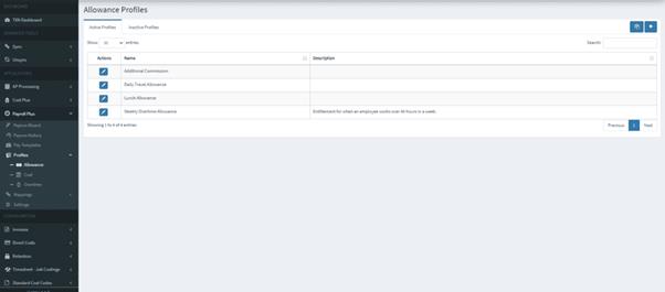The Allowance Profile section enables users to configure allowances based on specific rules and rates.