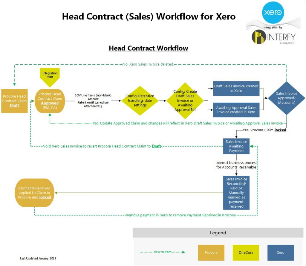 When you wish to invoice your client , you will need to create a Head Contract Progress Claim in Procore. Follow your normal process to create a Head Contract Progress Claim. Once the status reaches Approved , the integration will send it to Xero as a Sale in draft/waiting approval.