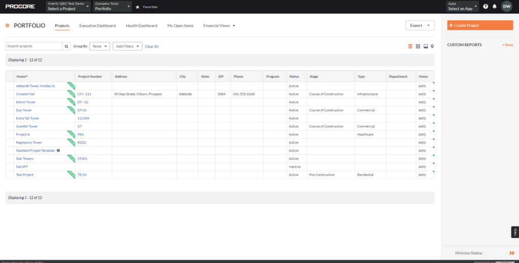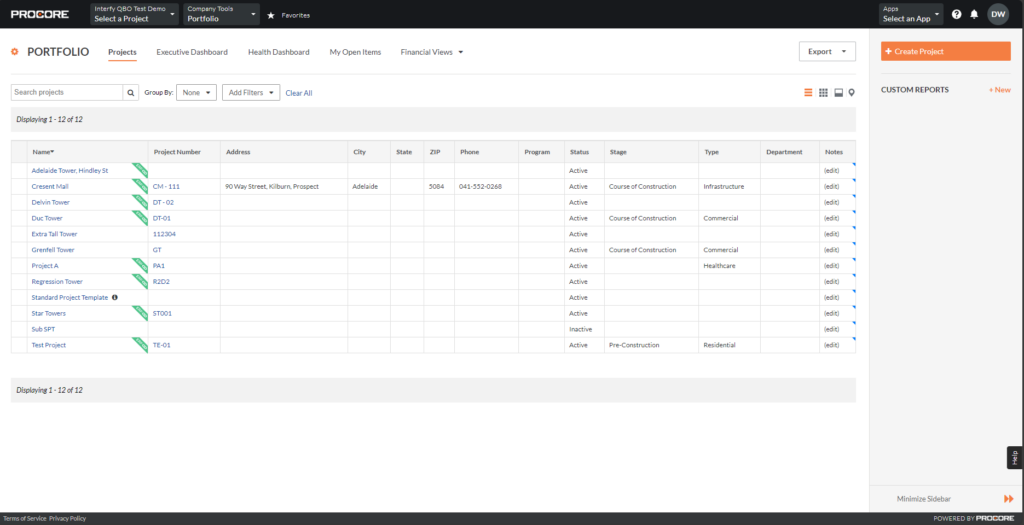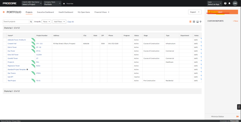 In OneCore, think of the main customer in QuickBooks Online (QBO) as a company in Procore. And, consider a sub-customer in QBO as a project under that company in Procore.