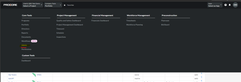 1. Navigate to Procore company level