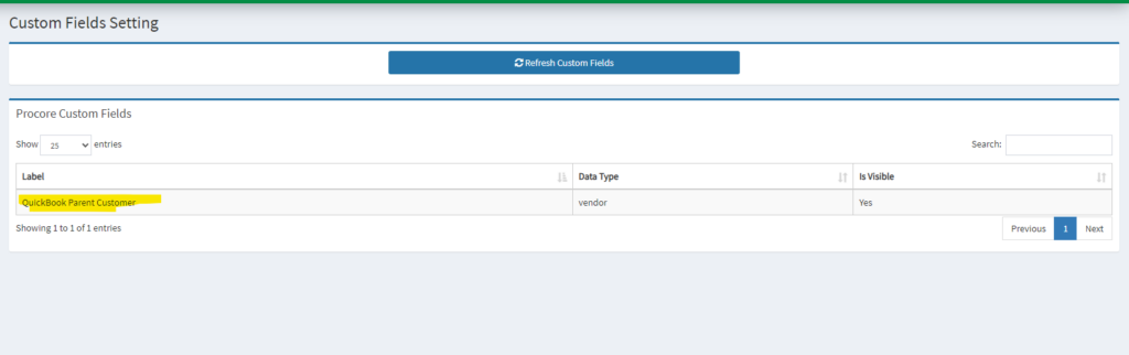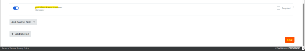 Procore Custom Fields: The field you just created in Procore previously where it will represent the QBO Parent Customer