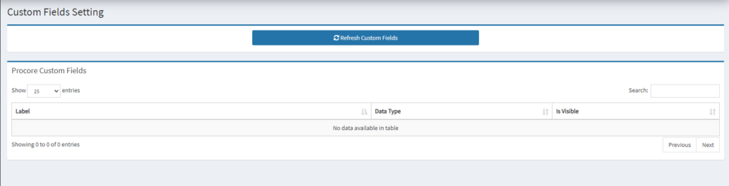 18. Click Refresh Custom Fields to pull the latest data from Procore.