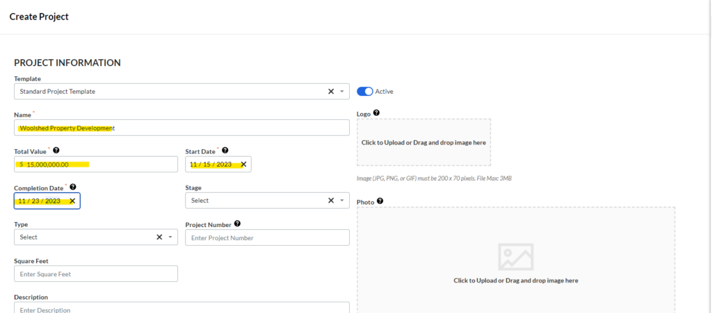 4. Filling up the necessary details about the project.