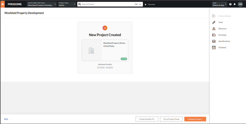 8. You shall receive a New Project Created notification.