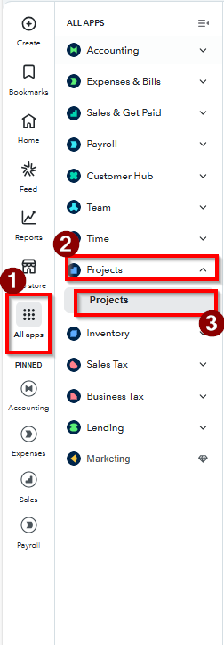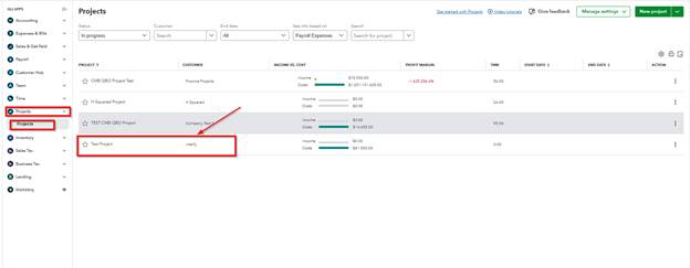 - Go to Projects in QuickBooks.