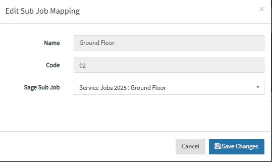 Select the Sub Job to map by pressing the blue ‘Pencil’ icon. A pop-up will appear that allows a Sage Sub Job to be selected.