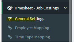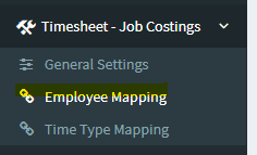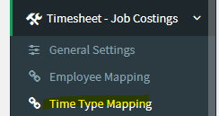 2. Once the module has been activated, the “Timesheet – Job Costings” menu will appear. Select the Time Type Mapping