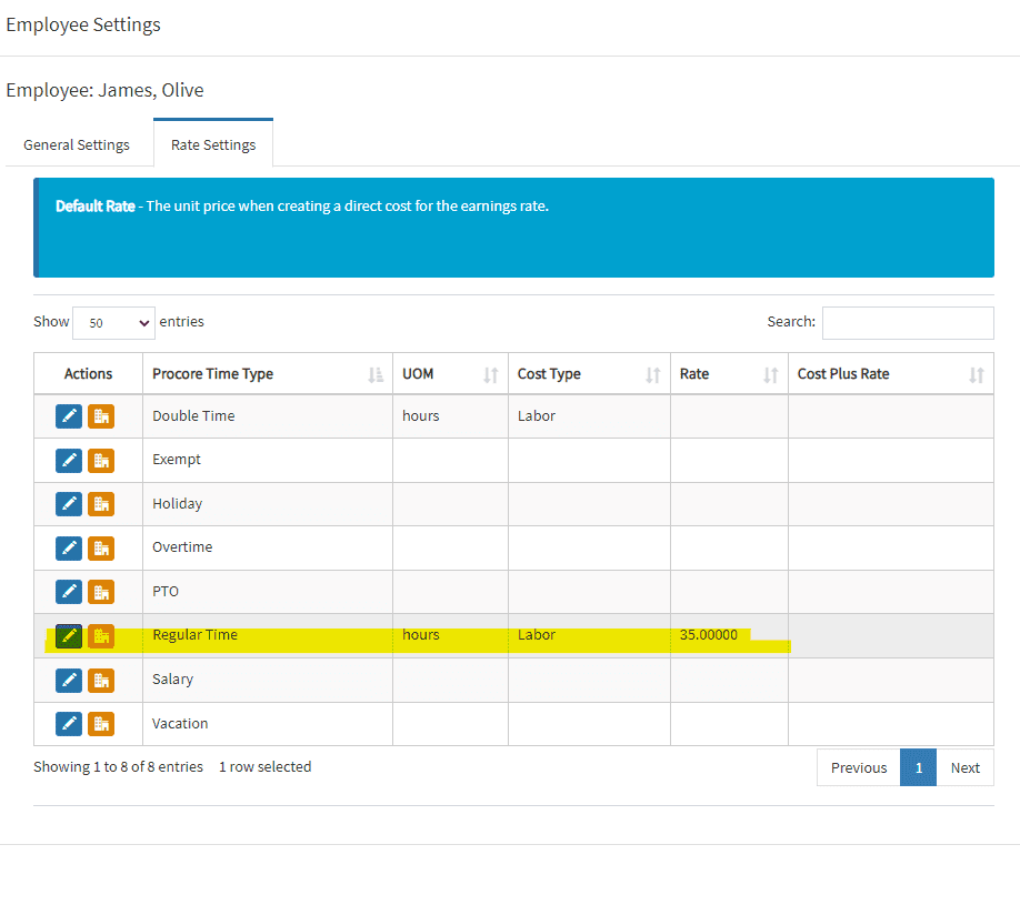 14. Go to the Rate Settings tab, and click the blue pencil icon to configure the default rate settings based on time type. Click Save Changes.
