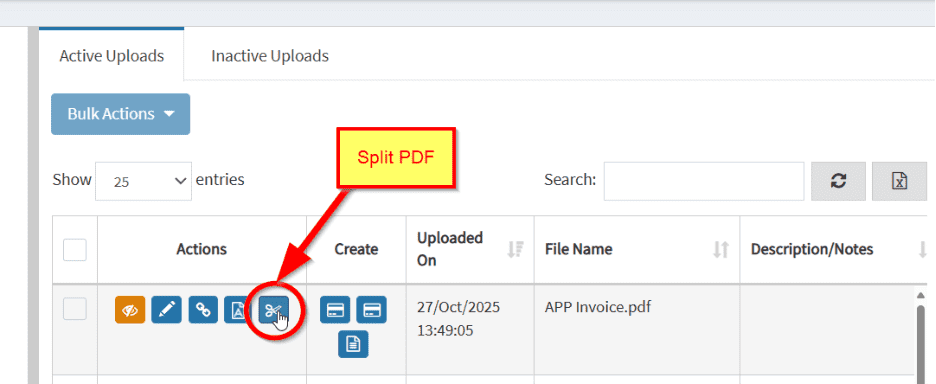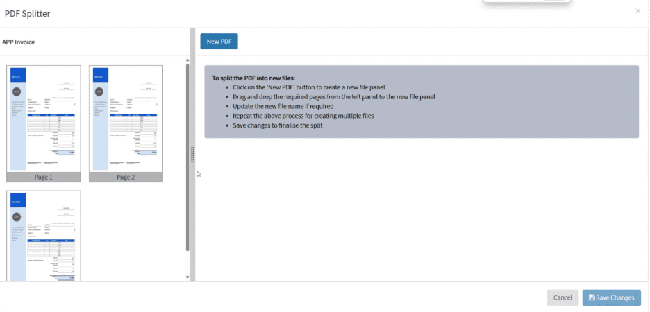 - PDF Splitter – Invoice can be split into multiple PDF files