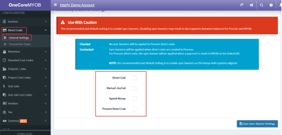 - Enable/Disable Sync Banners for Procore Direct Costs