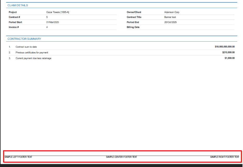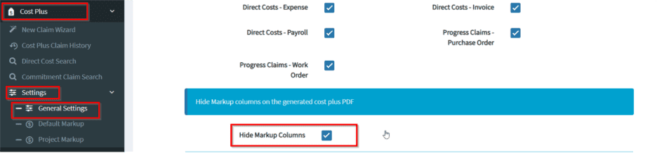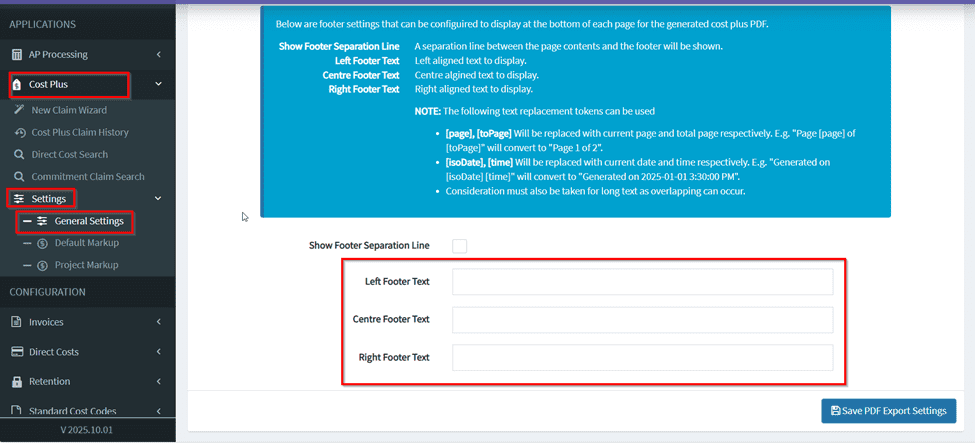 - PDF Footer Text – Footer settings that can be configured to display at the bottom of each page for the generated cost plus PDF
