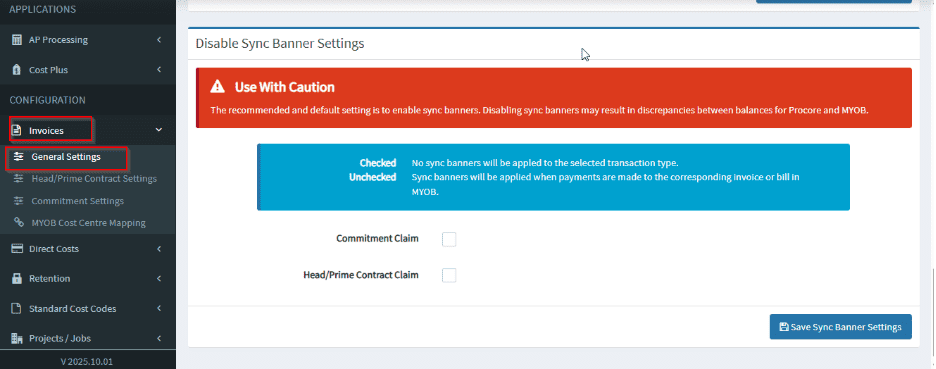 - Enable/Disable Sync Banner Settings for Head/Prime Contract and Commitment Claim